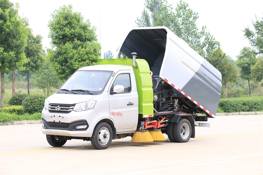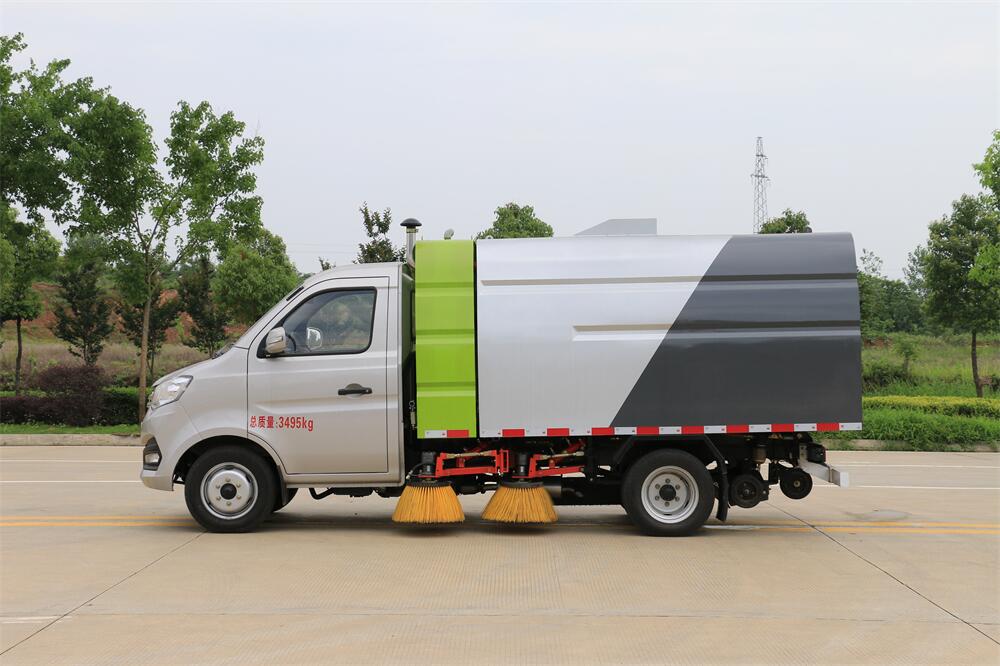 1.采用吸掃混合的方式收集垃圾,濕式除塵、電液,液壓傾翻卸料的作業(yè)方式對(duì)路面進(jìn)行清掃作業(yè)。