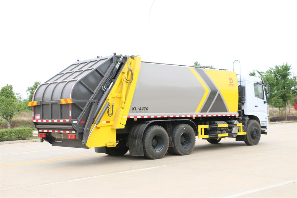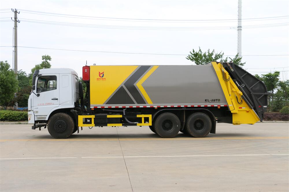 上裝配置:垃圾箱容積:18方,新款平面弧形廂體,廂體材料為武鋼優(yōu)質(zhì)碳鋼,PLC一鍵操作**,手電一體操作模式,兩側(cè)雙電控,帶駕駛室內(nèi)操作,底板支撐加強(qiáng),雙向壓縮,開放式易清潔污水箱。壓縮式垃圾車采用機(jī)電液一體化技術(shù),借助機(jī)、電、液聯(lián)合自動(dòng)**系統(tǒng)、電腦**、手動(dòng)操作系統(tǒng),通過填裝器和推鏟等專用裝置,實(shí)現(xiàn)垃圾倒入、壓碎或壓扁、強(qiáng)力裝填,把垃圾擠入車廂并壓實(shí)和推卸,污水全部進(jìn)入污水廂,解決了垃圾運(yùn)輸過程中的二次污染的問題。壓縮式垃圾車具有自動(dòng)反復(fù)壓縮以及蠕動(dòng)壓縮功能,壓縮比高、密封性好、裝載量大﹑操作方便、環(huán)保性好﹑整車?yán)霉β矢叩葍?yōu)點(diǎn)。作業(yè)自動(dòng)化,垃圾收集方式簡便、高效。后翻轉(zhuǎn)機(jī)構(gòu)選裝:1、掛塑料桶式翻轉(zhuǎn)機(jī)構(gòu);2、掛鐵桶式翻轉(zhuǎn)機(jī)構(gòu);3、擺臂式翻轉(zhuǎn)機(jī)構(gòu); 4、簸箕斗式翻轉(zhuǎn)機(jī)構(gòu)。