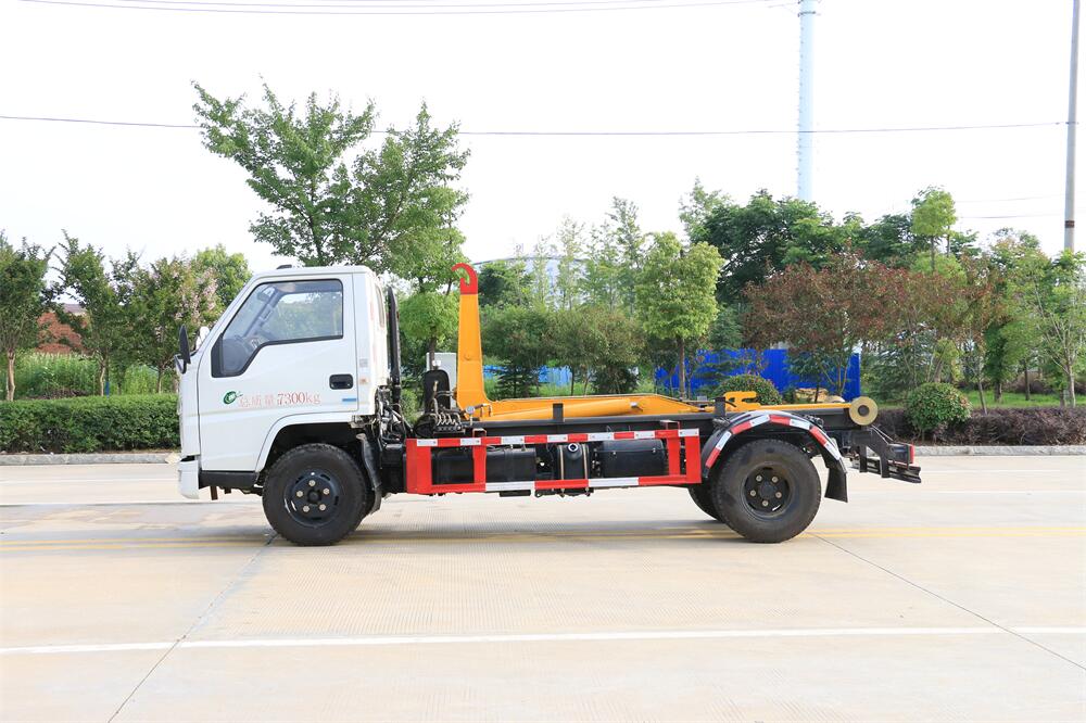 勾臂式垃圾車(車廂可卸式垃圾車)介紹: 車廂可卸式垃圾車又叫拉臂式垃圾車,是一種采用高新設(shè)計(jì)可伸縮的鉤臂,實(shí)現(xiàn)垃圾廂的二次吊裝,自吊上放下,可自行傾倒垃圾的環(huán)衛(wèi)設(shè)備。 拉臂式垃圾車結(jié)構(gòu)簡單,操作穩(wěn)定方便,裝卸效率高,機(jī)械化程度高,節(jié)省人力。鉤臂垃圾車一車可帶多個(gè)垃圾廂,在裝卸的運(yùn)輸過程中可有效地避免二次污染。 拉臂垃圾車采用高新設(shè)計(jì)可擺動的鉤臂,垃圾箱由框架、開啟油缸、滑輪、后門和若干加強(qiáng)框架與鋼板焊接而成。調(diào)換貨廂快捷方便,貨廂上帶蓋(倒垃圾時(shí)可翻開),鉤臂垃圾車?yán)鴰w可選用碳鋼、不銹鋼材質(zhì)、內(nèi)部采取環(huán)氧樹脂防腐處理,改裝部分與原車底盤為可分離式,維修方便且保持了原車的機(jī)動性及行駛性能。