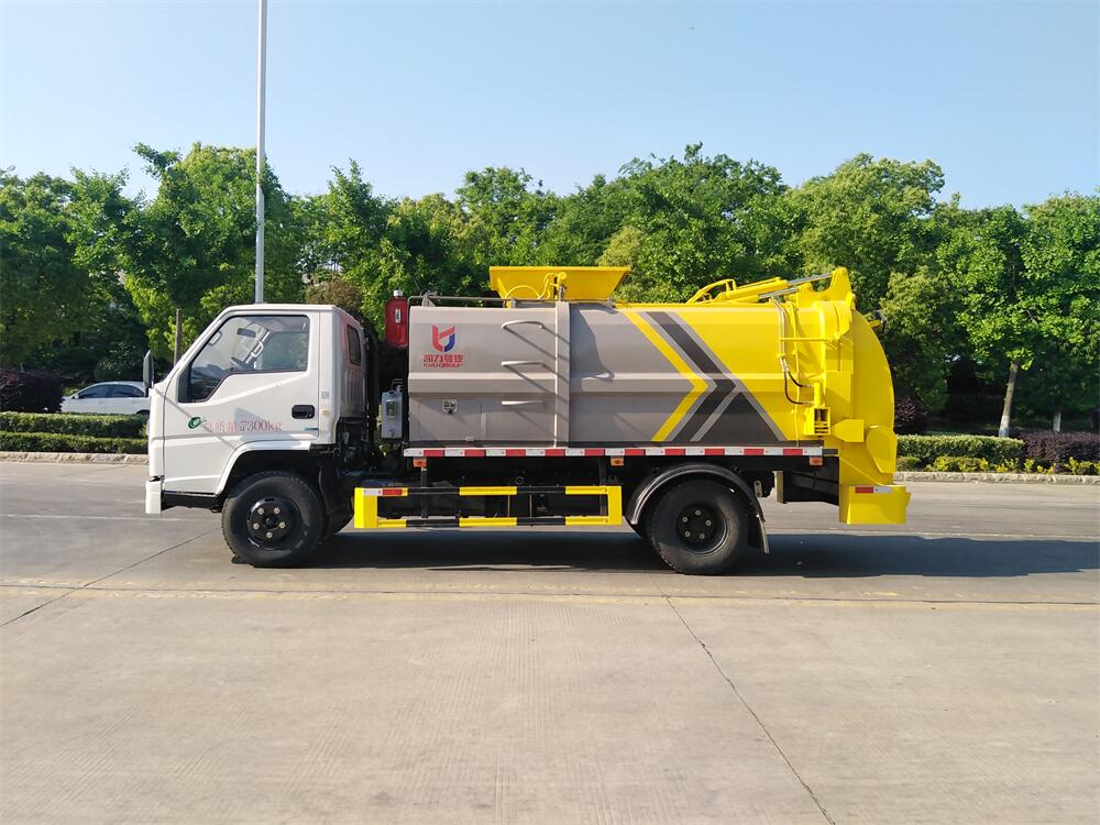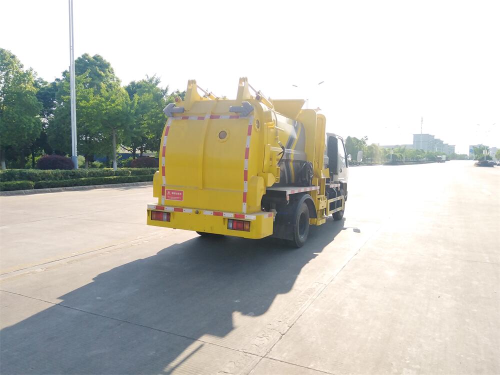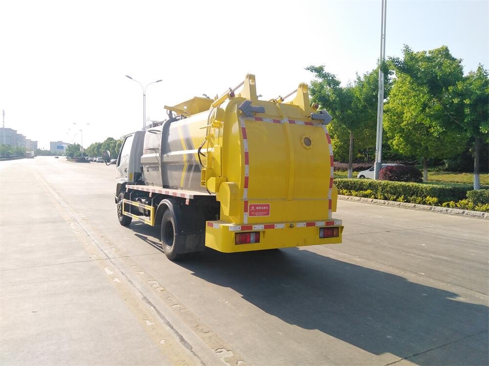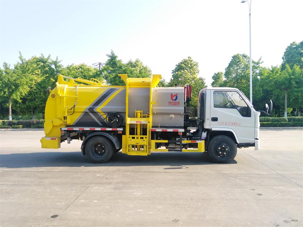 上裝配置:罐體容積6m3,配備120L/240L掛桶提升翻轉(zhuǎn)機(jī)構(gòu),液壓系統(tǒng),后蓋液壓鎖緊開啟,罐體可以舉升自卸,尾部帶自流閥;用于運(yùn)輸液態(tài)垃圾,其特點(diǎn)操作簡(jiǎn)單,密封性好,無(wú)泄漏,無(wú)異味;可選裝固液分離功能,推板擠壓功能,常用于餐館的垃圾轉(zhuǎn)運(yùn)處理。