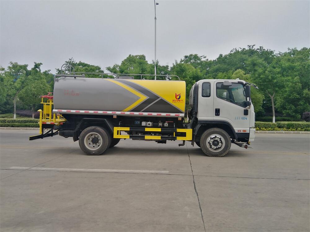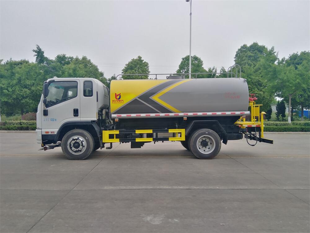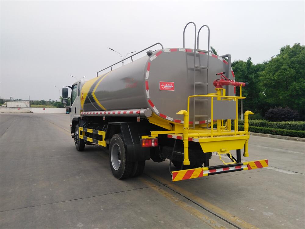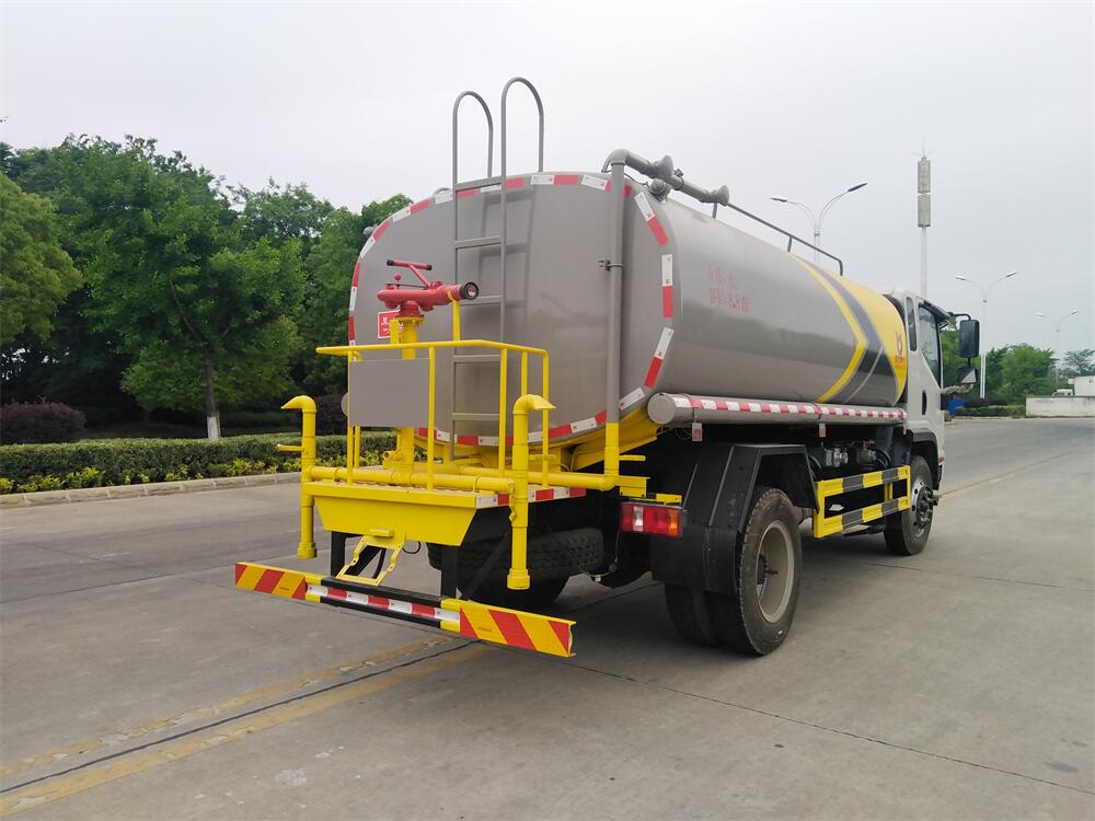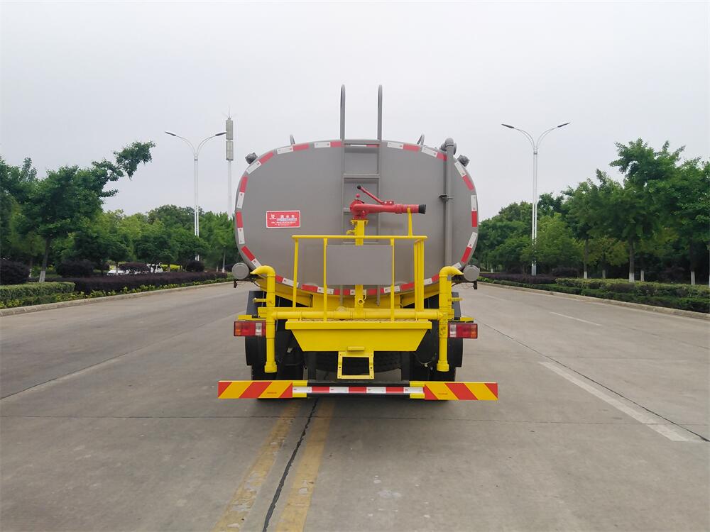 灑水車前裝有鴨形噴嘴或圓頭沖嘴,后面裝有圓柱開灑水噴嘴或蓮蓬頭噴嘴,后部有一工作平臺,裝配有水炮。后部還可裝8個噴嘴(選裝)。