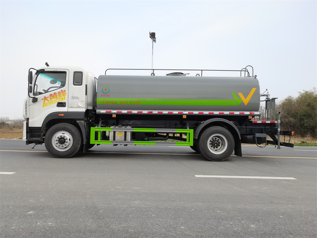 上裝配置:罐體有限容積11.07立方,罐體實際容積14.4方,罐體鋼材厚度5mm,采用大流量水泵60-90,基本灑水功能前沖、后灑、側噴、工作平臺帶消防高炮(可調節成霧狀、直柱狀)、罐體兩側炮筒、可泵進泵出,帶兩根抽水軟管。后平臺可選裝霧炮裝置