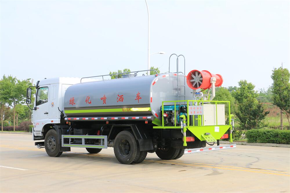上裝配置:罐體容積 12立方,風送式霧炮機組30米,40米選擇,罐體采用國標Q235碳鋼材質,罐體厚度4MM,前后封頭5MM加厚型,罐體內雙層隔板具有防波蕩作用,以減輕汽車行駛時罐內液體沖擊;灑水車整車及外形尺寸嚴格按照**機動車公告制作而成;裝配大功率專用灑水泵,前沖、后灑、側噴、后平臺帶綠化灑水炮,灑水炮可全方位旋轉,可連續調成直沖狀、大雨、小雨、毛毛雨;配消防接口,自流閥,濾網,帶自吸自排功能。前封頭帶水位計,后平臺主管路帶1寸澆花接口,后爬梯,帶1個消防接頭,帶1個自流閥,1個過濾裝置,其余標配。
