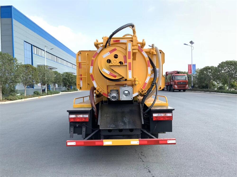 配置SK-9水循環(huán)泵(可選裝油泵、杭州威龍泵)國產(chǎn)天津240KG/170流量高壓泵(可選裝進口高壓泵),60米19高壓管,8米吸污管一根,十個高強度噴頭,后一個100進污口,一個150排污口,罐體可舉升,后蓋可液壓開啟,全套為液壓操控,加大工具箱、視糞窗上帶球閥,一個洗手小球閥、兩個消防接口、兩個泄壓閥、加寬平臺、防溢閥,真空泵帶油水分離器,帶洗手裝置,管道清洗裝置,冬季吹水裝置。