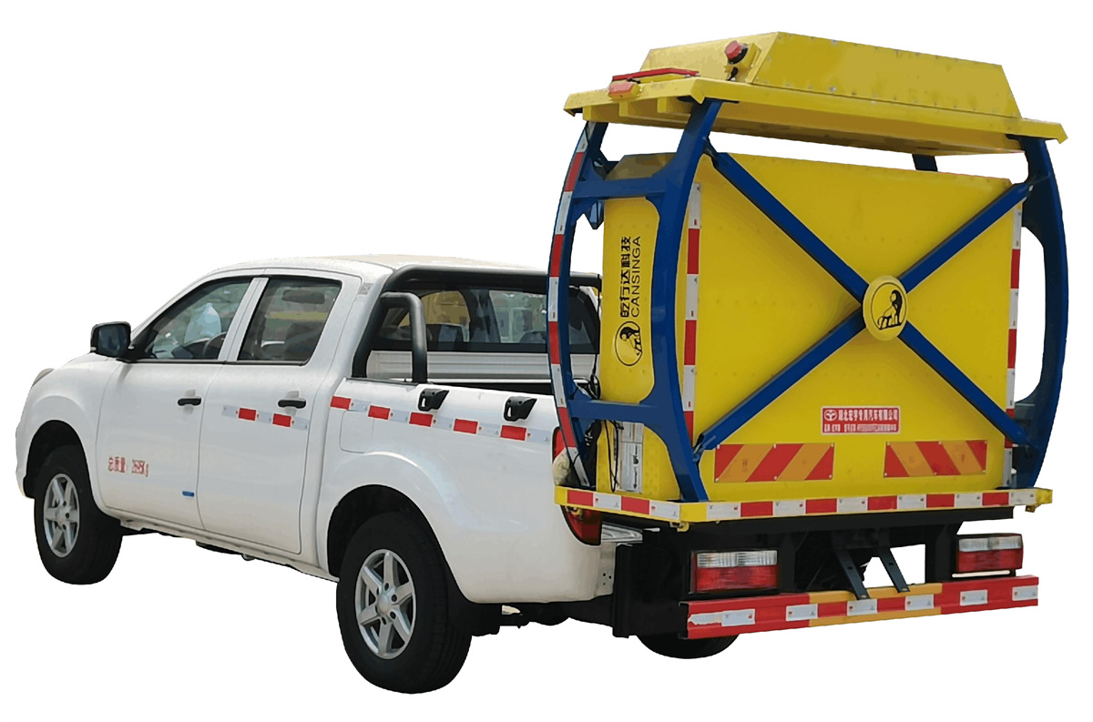 護箱:江鈴全新一代寶典原廠貨箱,箱體后部防撞緩沖模塊包采用國際知名品牌公司技術產品70K防撞緩沖模塊,防撞緩沖吸能模塊主要由車載防撞緩沖墊和導向標志架組成,充當施工作業車輛后方的緩沖衛士。如若發生追尾事故,能夠在肇事車輛和前方施工作業區域之構建一個緩沖區域,通過機具結構變形吸收撞擊的能量,**大限度地降低被保護人員及設備遭到碰撞的幾率。高性能液壓系統,可實現快速舉升和落下操作,方便設備運輸轉場,一鍵啟動功能,舉升和落下防撞裝置,當防撞裝置未完全落下到工作位置或舉升到垂直運輸位置時,會有自動**告音提示。