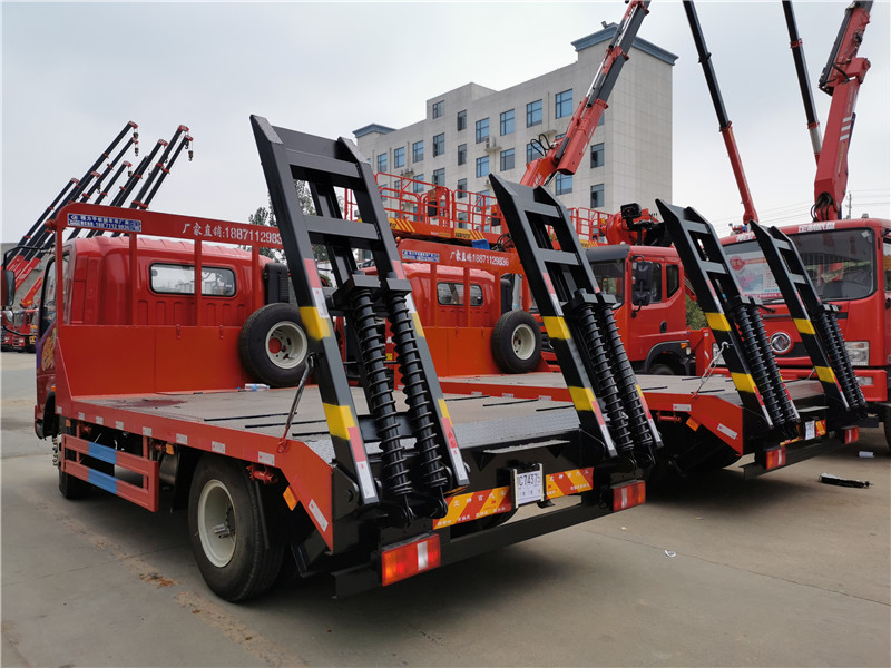 上裝采用五毫米花紋鋼板,100*100方鋼做橫梁,雙彈簧爬梯,可拉8/10/12噸以下挖機。