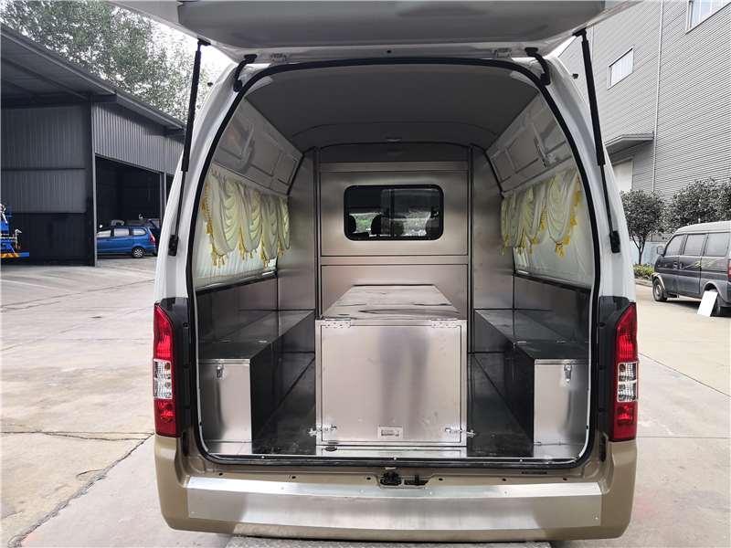 產品簡介 1. 主要配置:前空調,前暖風,電動車窗,ABS+EBD, 遙控鑰匙2. 改裝部分采用304L不銹鋼制作,中間不銹鋼隔墻安裝拉窗,不銹鋼地板,不銹鋼常溫棺不銹鋼擔架,加兩側玻璃下不銹鋼裝飾,根據您的要求設計改裝方案,模板一次成型,隔墻密封,拒串味。可以廠家自提,也可以付定金貨到付款。(冰棺選裝,后空調選裝,可視系統選裝,對講系統選裝)